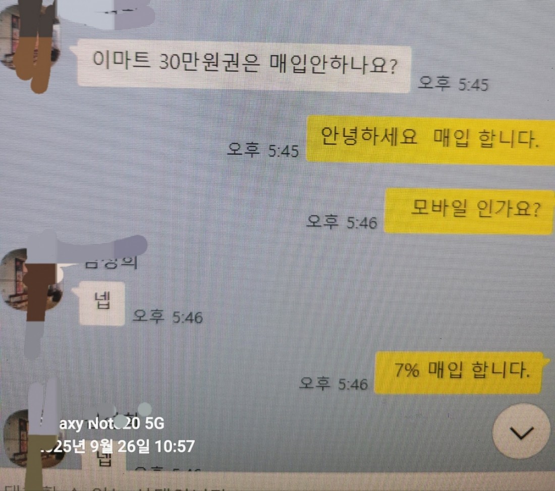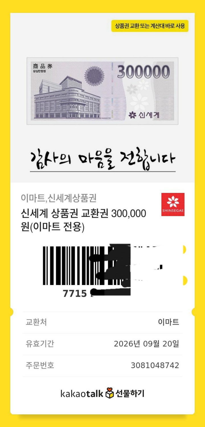 카카오톡으로 선물 받은 이마트 상품권 처분