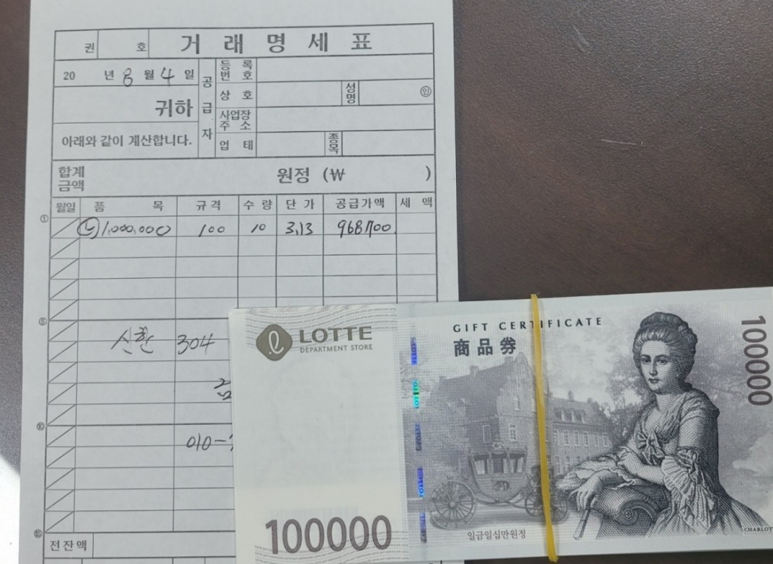 퇴근길에 롯데 백화점 상품권 10장 교환 했어요