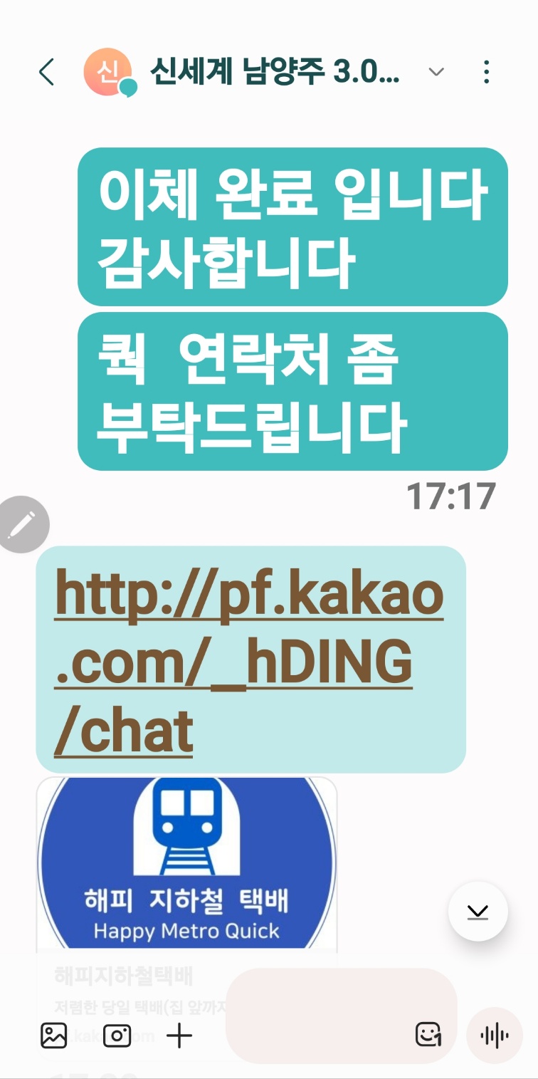 시간은 없으시고 빠른 거래를 위해 해피 지하철 택배로 퀵서비스로 진행했고,