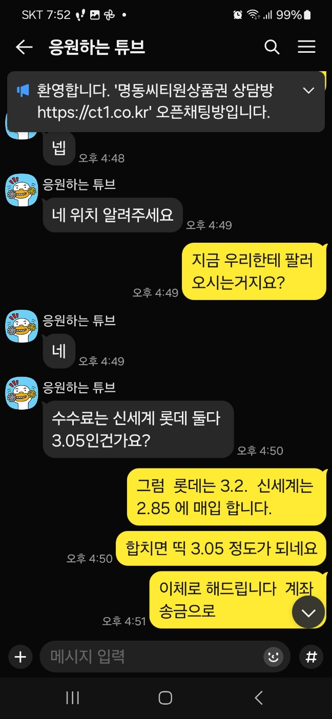 미리 연락 주셔서 기다린 끝에 성사된 롯데 신세계 백화점 상품권 580만 원 거래