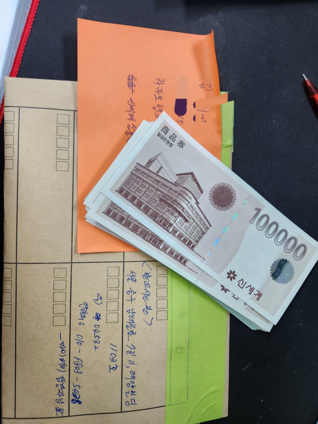 성수동 고객님, 신세계상품권 300만원 퀵으로 안전하게 도착했습니다