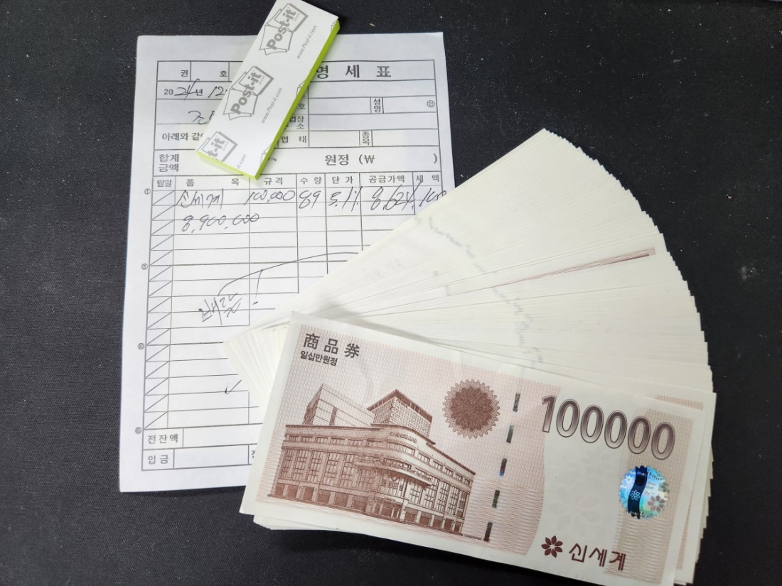 명품 구매를 위해 신세계상품권 890만원 상품권 구매