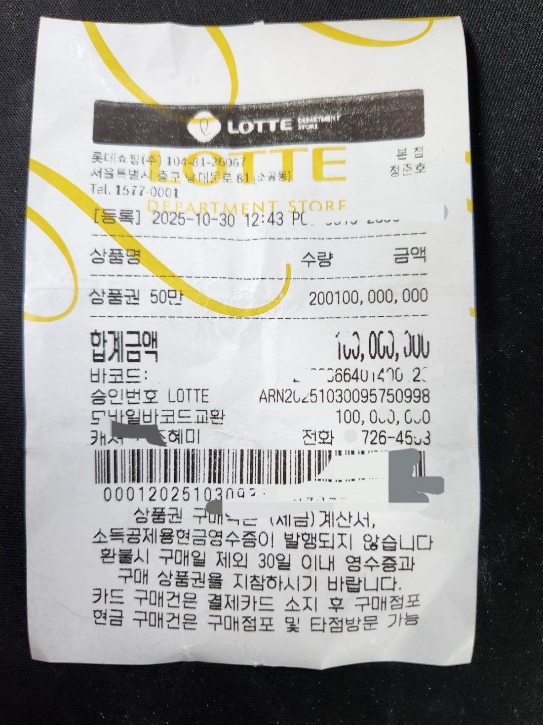 롯데 백화점 모바일 상품권 바코드 도매 매입 거래 완료 입니다.